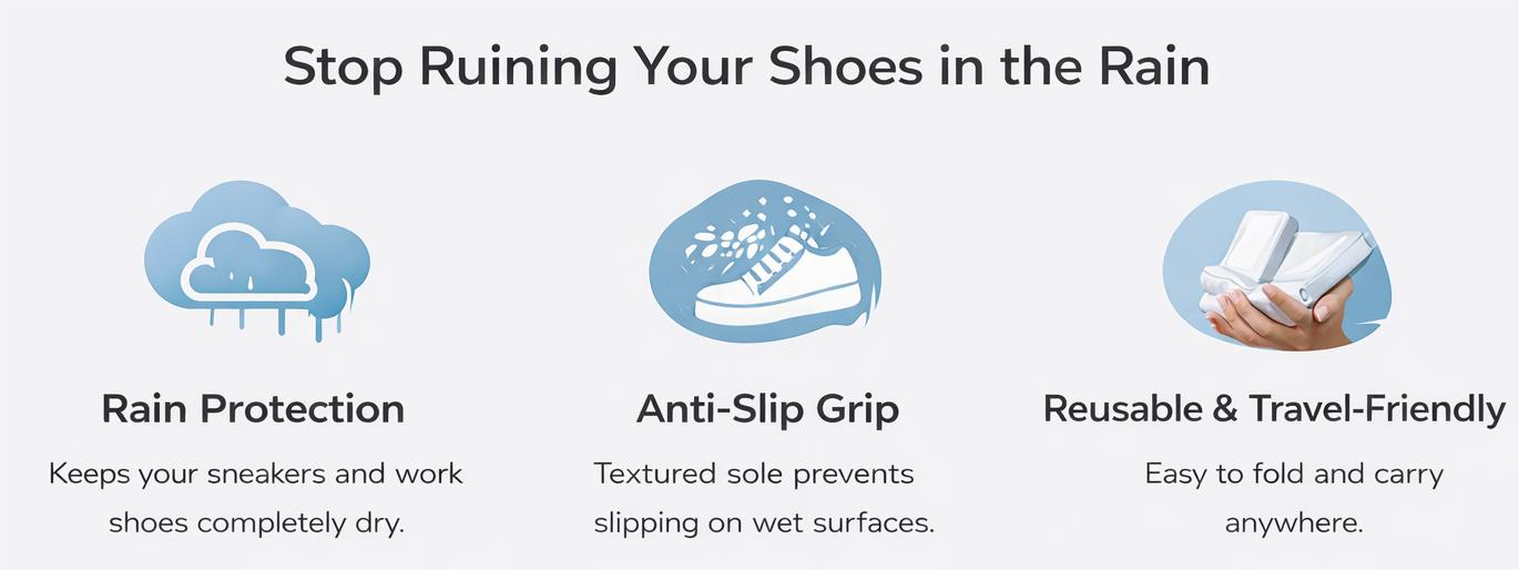 Life's busy enough without worrying about the weather. Slip DryFeet on when the rain starts, fold them away when it stops.